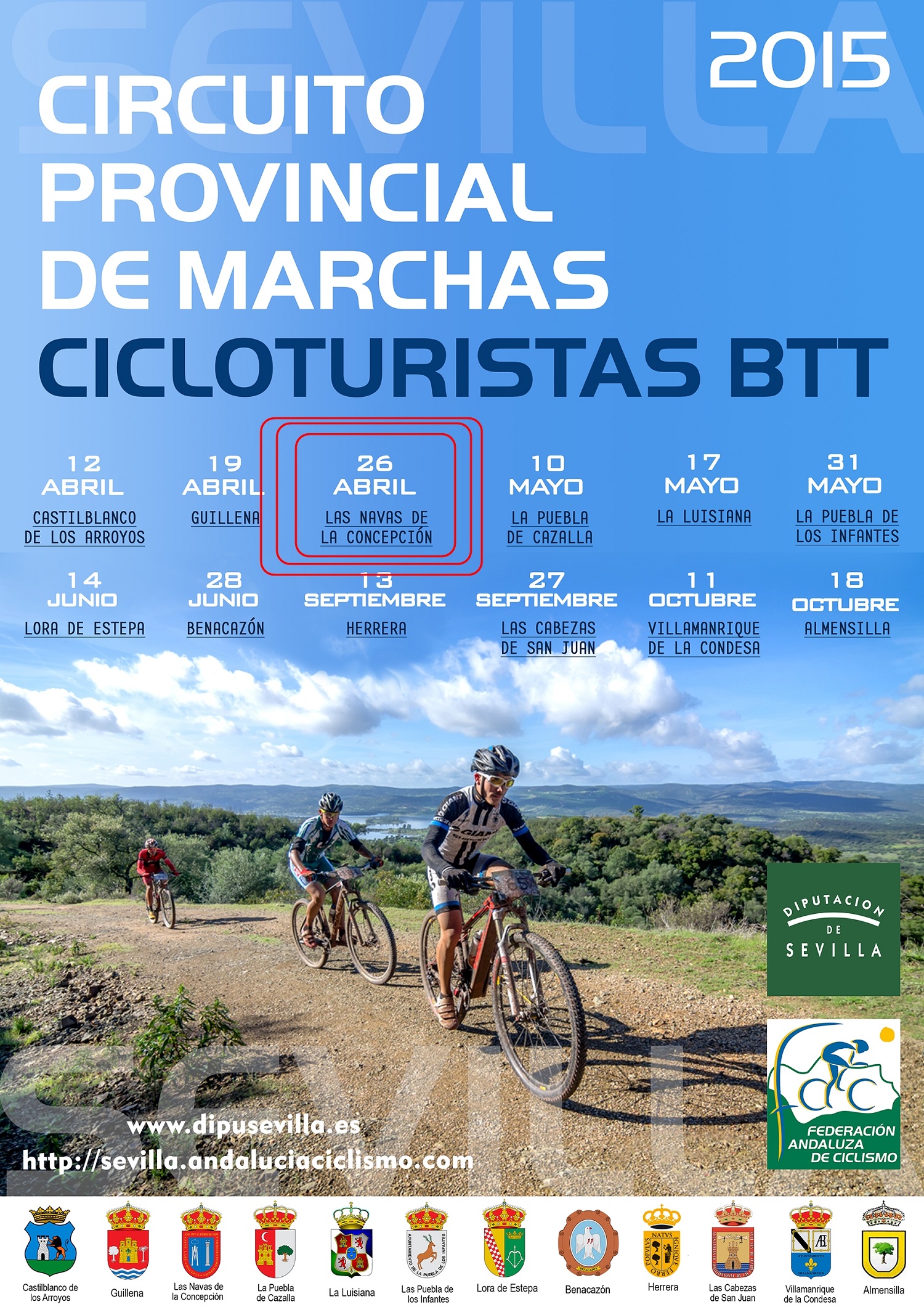 26 DE ABRIL, CICLOTURISTA EN LAS NAVAS DE LA CONCEPCIÓN. LUGAR DE RECEPCIÓN Y PRESENTACIÓN DE PARTICIPANTES: PLAZA DE ESPAÑA. 9,00: RECOGIDA DE DORSALES. 10,00: SALIDA...